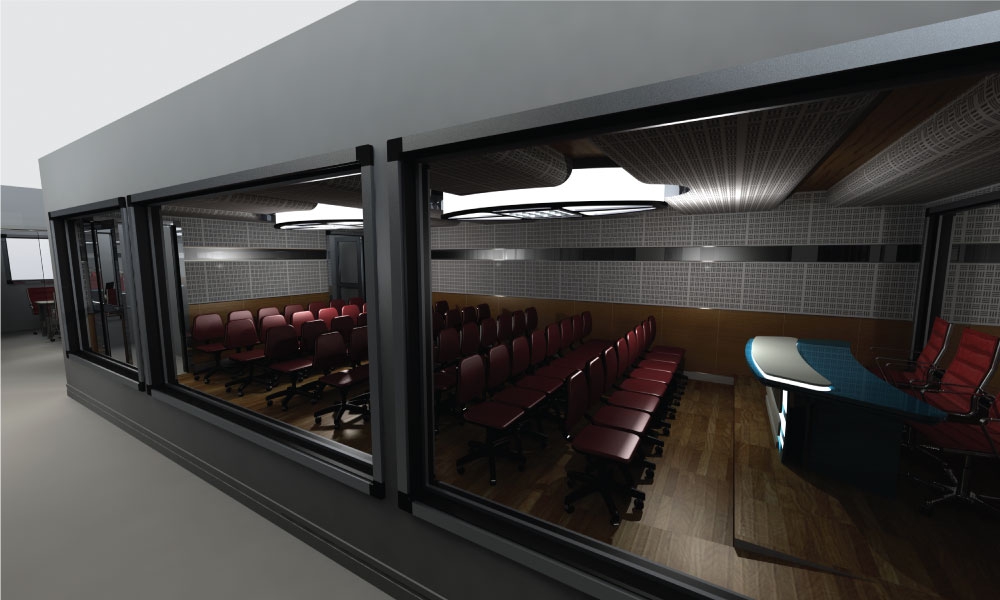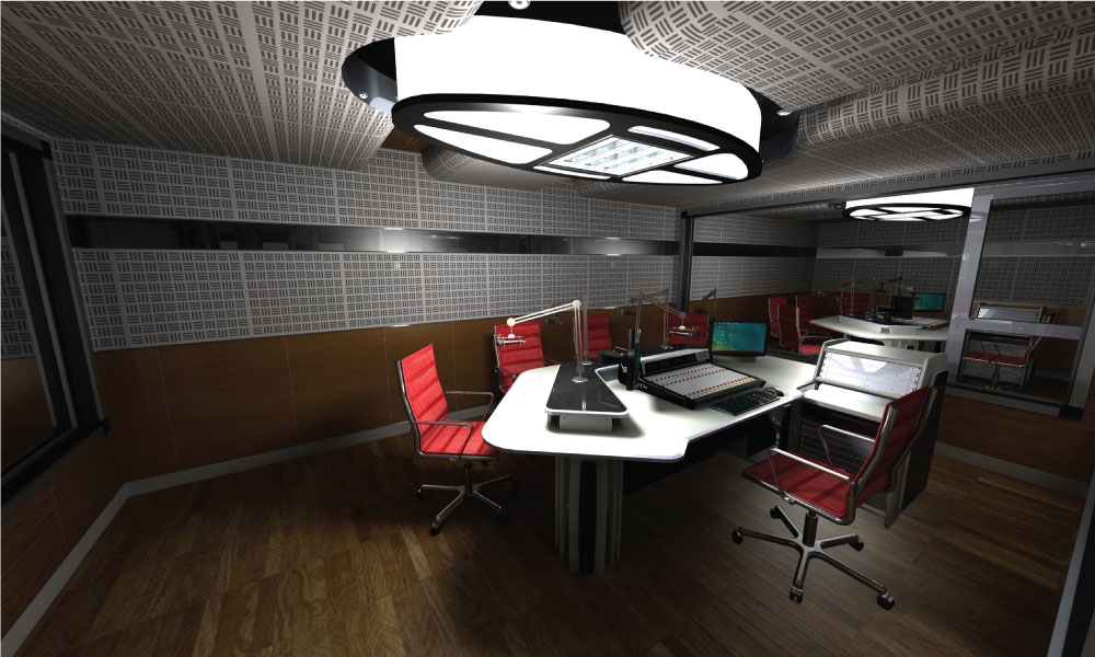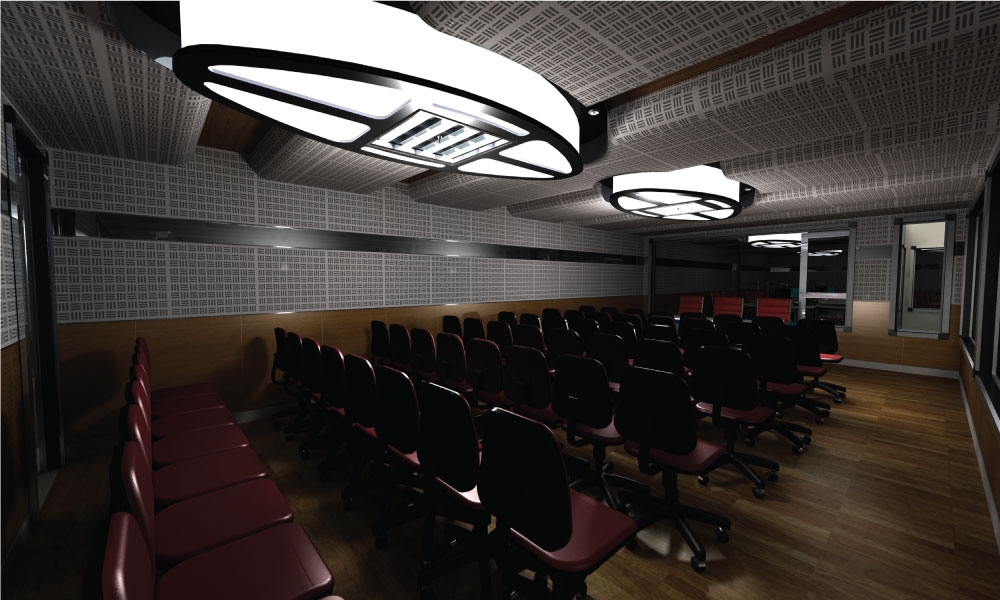 Realizamos um estudo arquitetônico onde elencamos todos os acabamentos acústicos para paredes e teto, portas acústicas, mobiliários e equipamentos, afim de compor um ambiente de trabalho confortável, sofisticado, seguro e funcional.